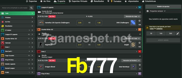 O Fb777 oferece uma grande seleção de opções de apostas em e-sports com probabilidades competitivas